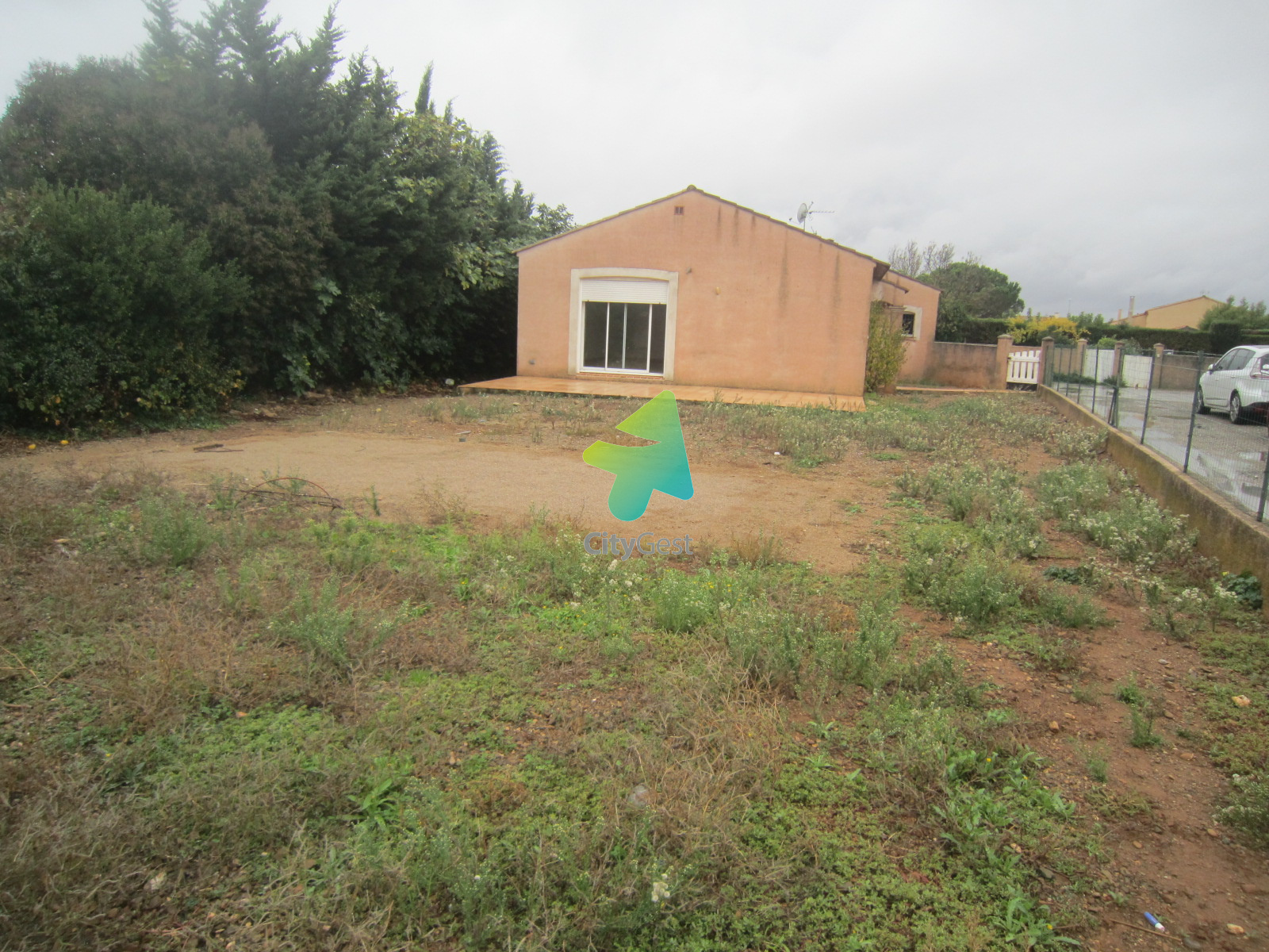 Sallèles d'Aude, Villa de plain pied sur 3 faces sur 527 m2 de terrain comprenant : hall d'entrée - cuisine ouverte sur le séjour - 3 chambres placards - salle de bains + douche - wc - garage - surface habitable 89 m2 - chauffage électrique - double vitrage pvc et volets électriques -