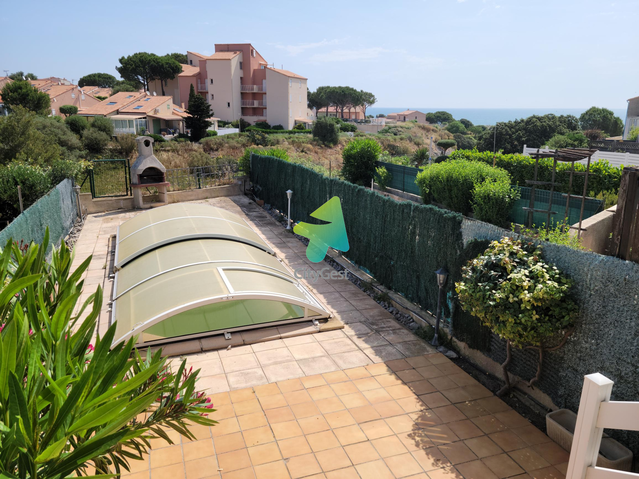 Comprenant : Séjour avec Cuisine Ouverte, 1 Chambre, Salle de Bain, wc séparé. Etage : 1 Chambre, 1 Mezzanine. Terrasse Arrière avec Possibilité de rentrer une voiture, Terrasse Avant avec Piscine Privative et Vue Mer. Sous sol Pas de Copro Les informations sur les risques auxquels ce bien est exposé sont disponibles sur le site Géorisques : www.georisques.gouv.fr”.