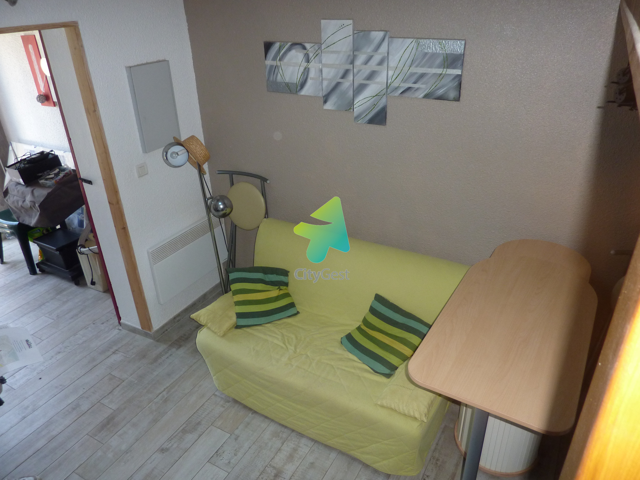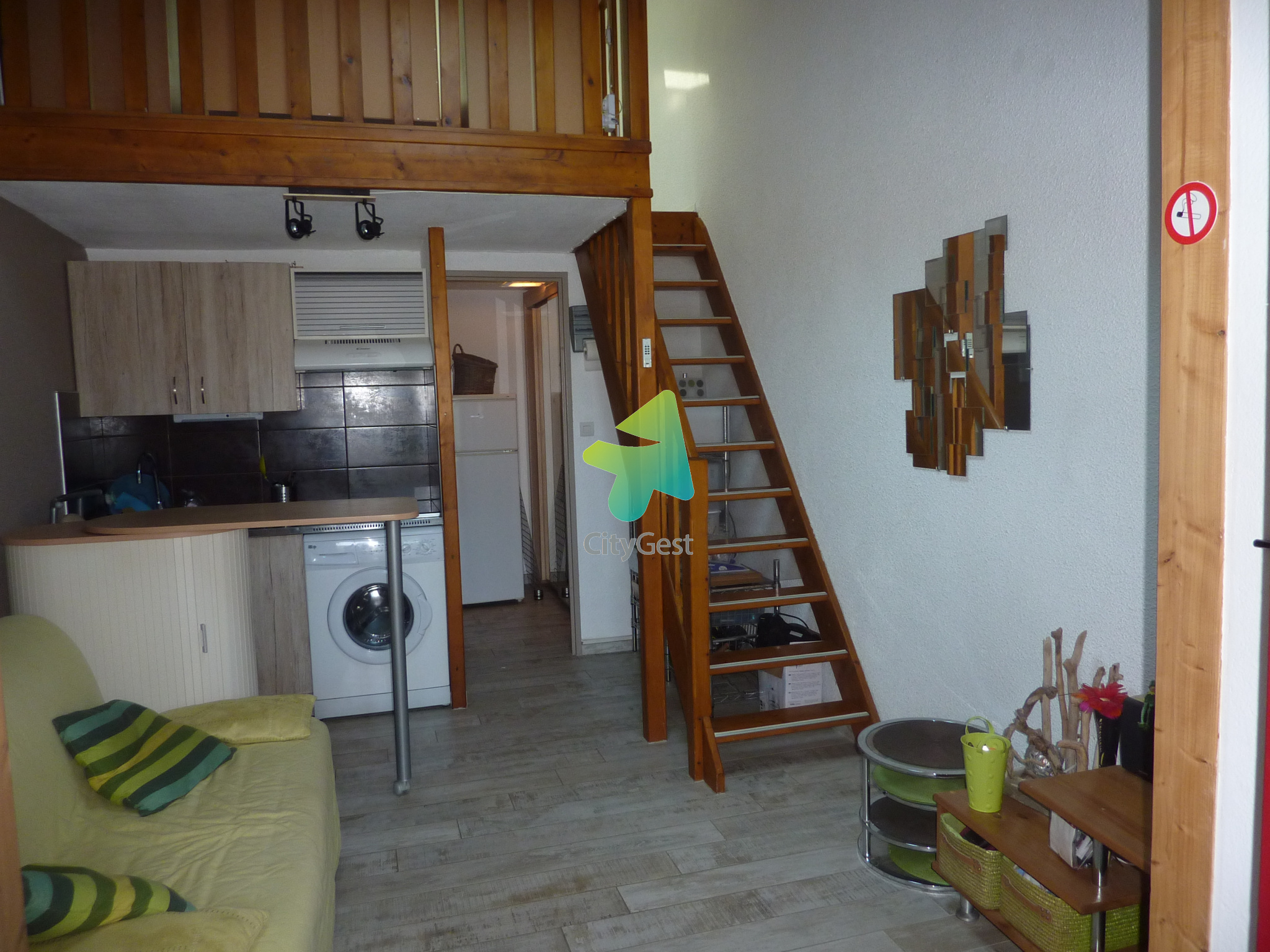 Maison proche de la mer centre-Ville résidence avec piscine Maison qui se compose 1chambre mezzanine une douche italienne wc Séjour lumineux donnant sur de bais vitrées double vitrage avec une terrasse arborée et une place de parking devant la Maison