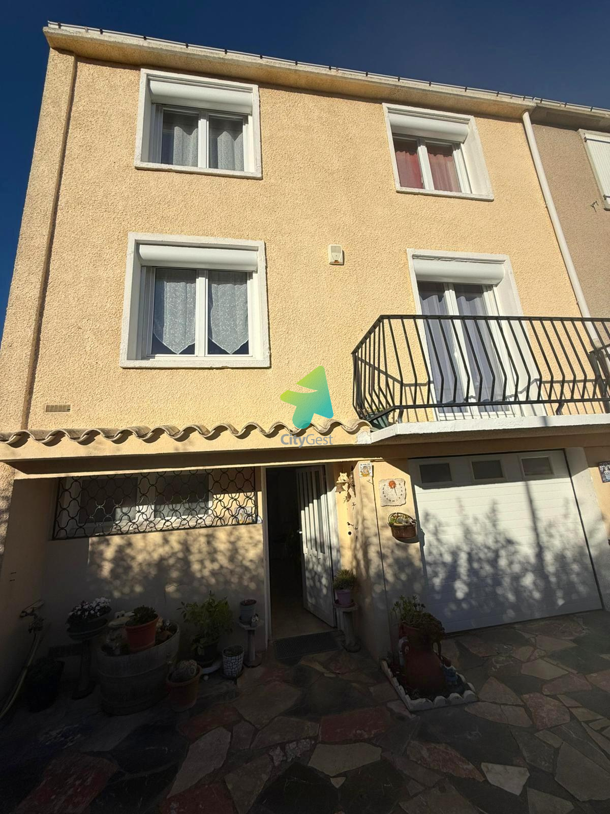 Narbonne, villa de type 4 sur 3 faces sur 249 m2 de terrain comprenant : rdc : grand hall d'entrée (10.15 m2) - chaufferie- buanderie - garage 26 m2 prolongé par un cellier - 1er étage : cuisine équipée (12.15 m2) - séjour salon (25.25 m2) donnant sur un terrasse de 12 m2 et sur un balcon - wc - dressing vestiaire - 2ème étage : 3 chambres (11.25, 13.80 et 10.90 m2) dont une avec placard - salle d'eau - sh = 110 m2 - chauffage central gaz + climatisation réversible - double vitrage pvc - volets roulants électriques - puits -