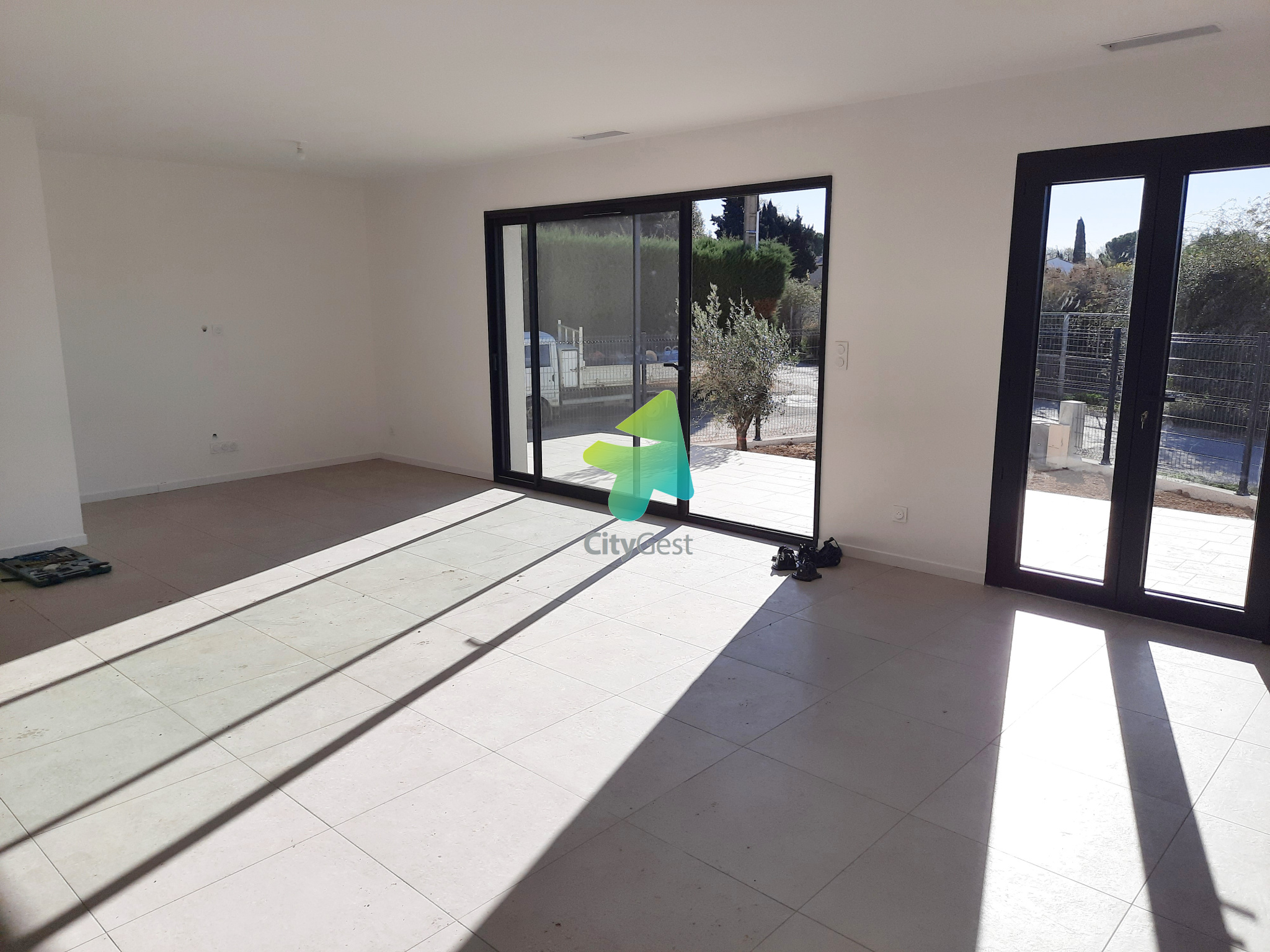Cuxac d'aude, villa neuve à étrenner de type 4 de plain-pied sur 4 faces sur 494 m2 de terrain clôturé comprenant : entrée placard aménagé - grand séjour salon avec cuisine équipée exposé sud donnant sur terrasse - une suite parentale de 24 m2 avec dressing et salle d'eau - 2 chambres avec placard aménagé - 2nde salle d'eau - wc indépendants - garage de 21 m2 - 2 places de parking - sh = 115 m2 environ - climatisation réversible en gainable et chauffe eau thermodynamique. Maison très lumineuse, endroit très calme, possibilité de rentrer un camping-car sur le terrain -