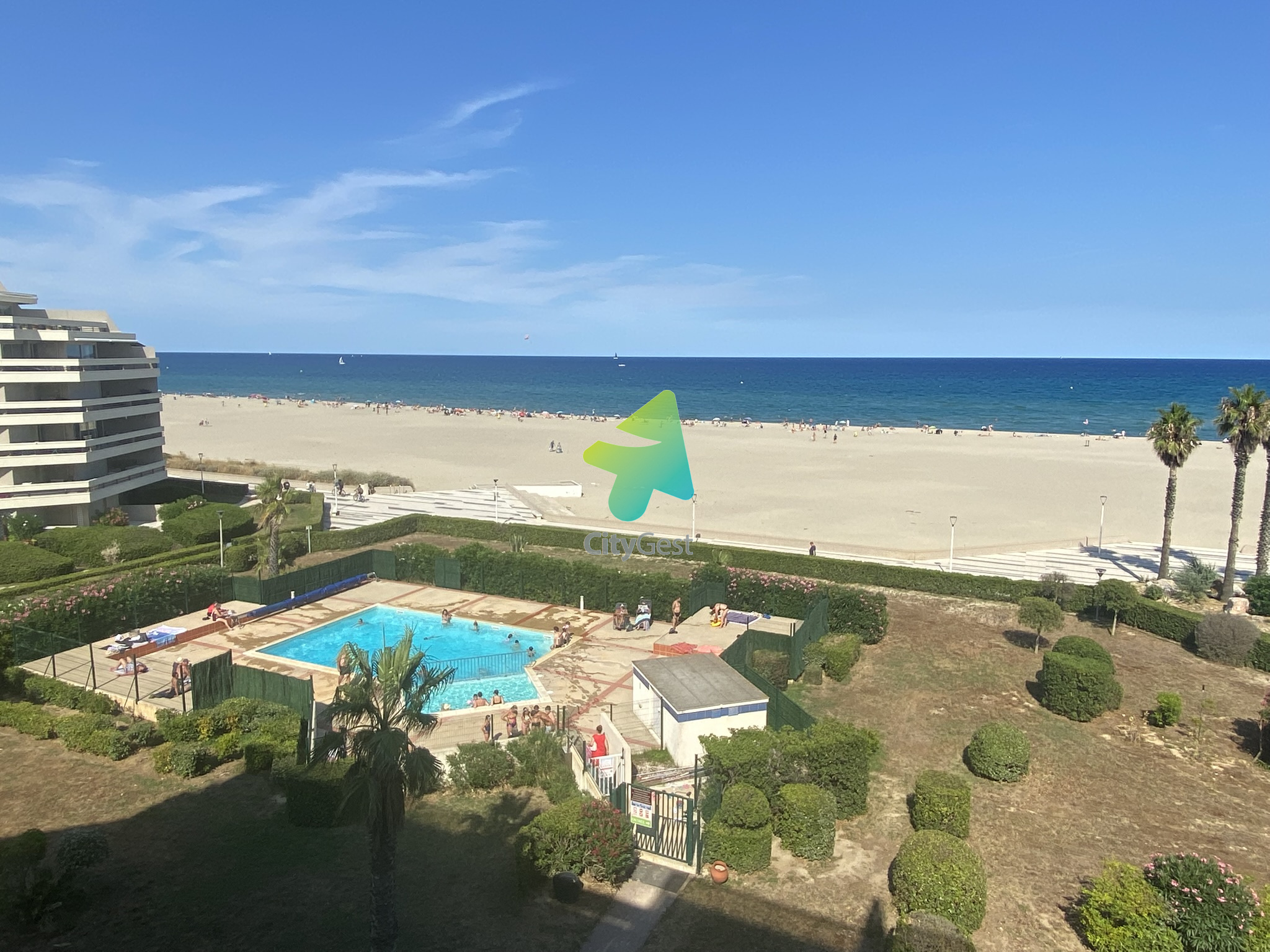 EXCLUSIVITE CITYGEST CANET. Heureux de vous présenter ce produit très recherché. Situé quartier Grand Sud dans une résidence sécurisée qui possède un accès direct à la plage et une piscine. Garage spacieux en sous-sol depuis lequel vous aurez un accès à l'ascenseur qui vous mènera directement devant votre porte au 4ème étage. La vue mer est splendide et la terrasse de 10m² vous permettra d'en profiter pleinement. L'appartement est lumineux avec deux larges baies vitrées dans les deux pièces principales. L'ensemble séjour cuisine fait 21m² pour une superficie habitable totale de 37m². Quelques rénovations seront à prévoir pour atteindre le bonheur total.
