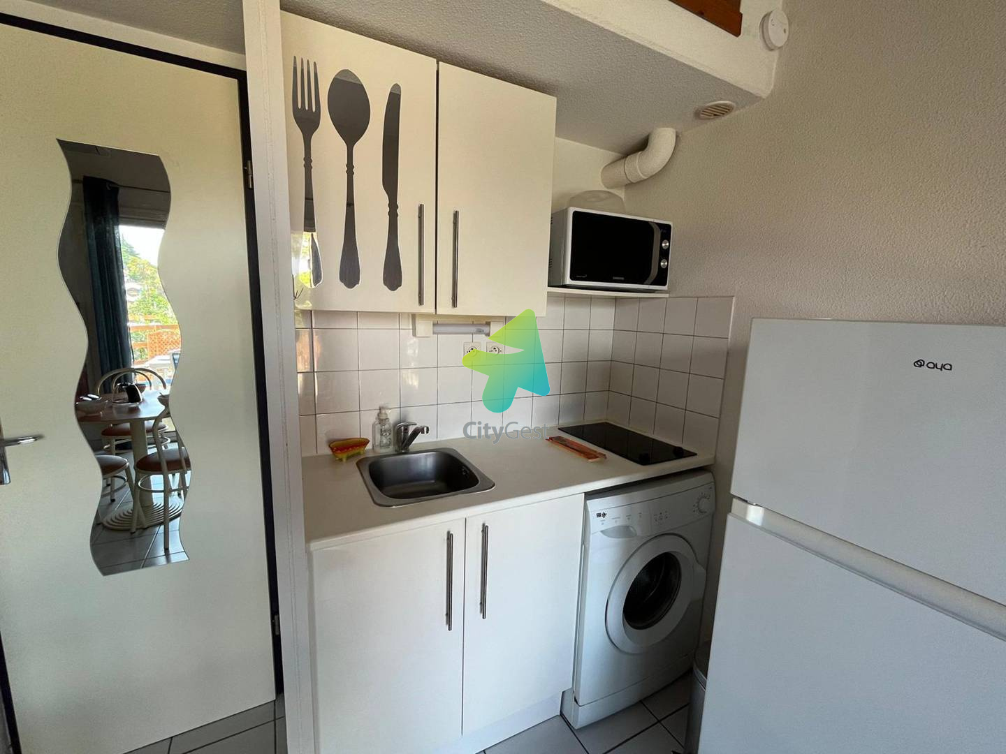 Pavillon Climatisé dans Résidence avec Piscine collective. Résidence Beau Soleil. Classé 2 étoiles. Résidence dans un cadre agréable et calme à 1km des commerces et de la plage avec piscine commune ouverte en saison estivale. Ce Pavillon T2 Mezzanine Climatisé, est composé d’un coin cuisine avec cafetière, bouilloire, réfrigérateur-congélateur, plaque vitrocéramique 2 feux, four électrique, micro-ondes, lave-linge. La pièce de vie principale dispose d’un canapé, télévision, d’une mezzanine avec lit double en 140 et 2 lits en 90cm et d’une salle d’eau avec douche, lavabo et wc. Place de Parking. Prestations supplémentaires optionnelles : le linge de maison n'est pas fourni mais il est possible de le réserver à l'avance et de le récupérer à la remise des clés (kit lit double : 12.00 euros/ kit lit simple : 9.00 euros / kit serviette : avec une grande et une petite serviette : 8.00 €). Location WIFI BOX : 39 € / semaine Il vous sera demandé de régulariser le dépôt de garantie de votre location, le lien "swikly" vous sera envoyé 10 jours avant votre arrivée et sera à effectuer impérativement avant votre arrivée (Pas en espèces ni en chèques, des coûts seront facturés par l'opérateur). Nous sommes agréées Chèques Vacances. Ne convient pas aux PMR. La taxe de séjour est en supplément. Les clés sont à récupérer à l'agence Citygest entre 15h et 18h en période estivale. Les informations sur les risques auxquels ce bien est exposé sont disponibles sur le site Géorisques " www.georisques.gouv.fr "