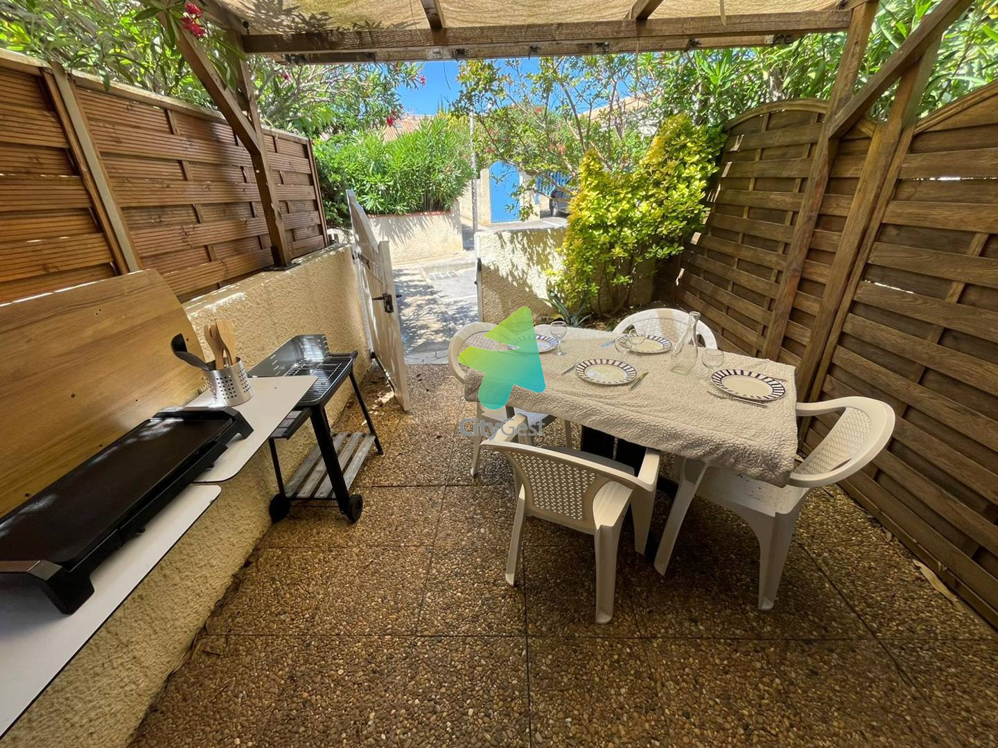 Pavillon Mezzanine meublé et équipé pour 4 personnes avec terrasse privative et salon de jardin. Piscine et pataugeoire sécurisées ouvertes en saison, parking privé. Résidence dans un cadre verdoyant au calme et à proximité des commerces et de la plage, ce petit pavillon est composé d'une pièce principale avec canapé, télévision et coin cuisine équipé : plaques de cuisson, réfrigérateur, micro-ondes, cafetière et bouilloire. Le séjour dessert une cabine avec 2 lits superposés ainsi qu'une mezzanine avec un lit pour 2 personnes, velux et rangements. Salle d'eau avec douche, lave-linge et wc. Profitez de la terrasse avec un barbecue (charbon) ainsi qu'une plancha ! La résidence se trouve sur les hauteurs de Saint Pierre La Mer, à 900 m des commerces et à 900 m de la mer. Elle dispose d'une piscine de 15m x 8 m avec une profondeur de 95 à 140 cm. Elle ouvre de début juillet à fin août. Les magasins, commerces d'alimentation, restaurant se situent à 900 m. Prestations supplémentaires optionnelles: le linge de maison n'est pas fourni mais il est possible de le réserver à l'avance et de le récupérer à la remise des clés (kit lit double: 12.00 euros/ kit lit simple: 9.00 euros / kit serviette : avec une grande et une petite serviette: 8.00 €). Location WIFI BOX : 39 € / semaine Il vous sera demandé de régulariser le dépôt de garantie de votre location, le lien "swikly" vous sera envoyé 10 jours avant votre arrivée et sera à effectuer impérativement avant votre arrivée (Pas en espèces ni en chèques, des coûts seront facturés par l'opérateur). Nous sommes agréées Chèques Vacances. Ne convient pas aux PMR. la taxe de séjour est en supplément. Les clés sont à récupérer à l'agence Citygest entre 15h et 18h en saison estivale. Les informations sur les risques auxquels ce bien est exposé sont disponibles sur le site Géorisques " www.georisques.gouv.fr "