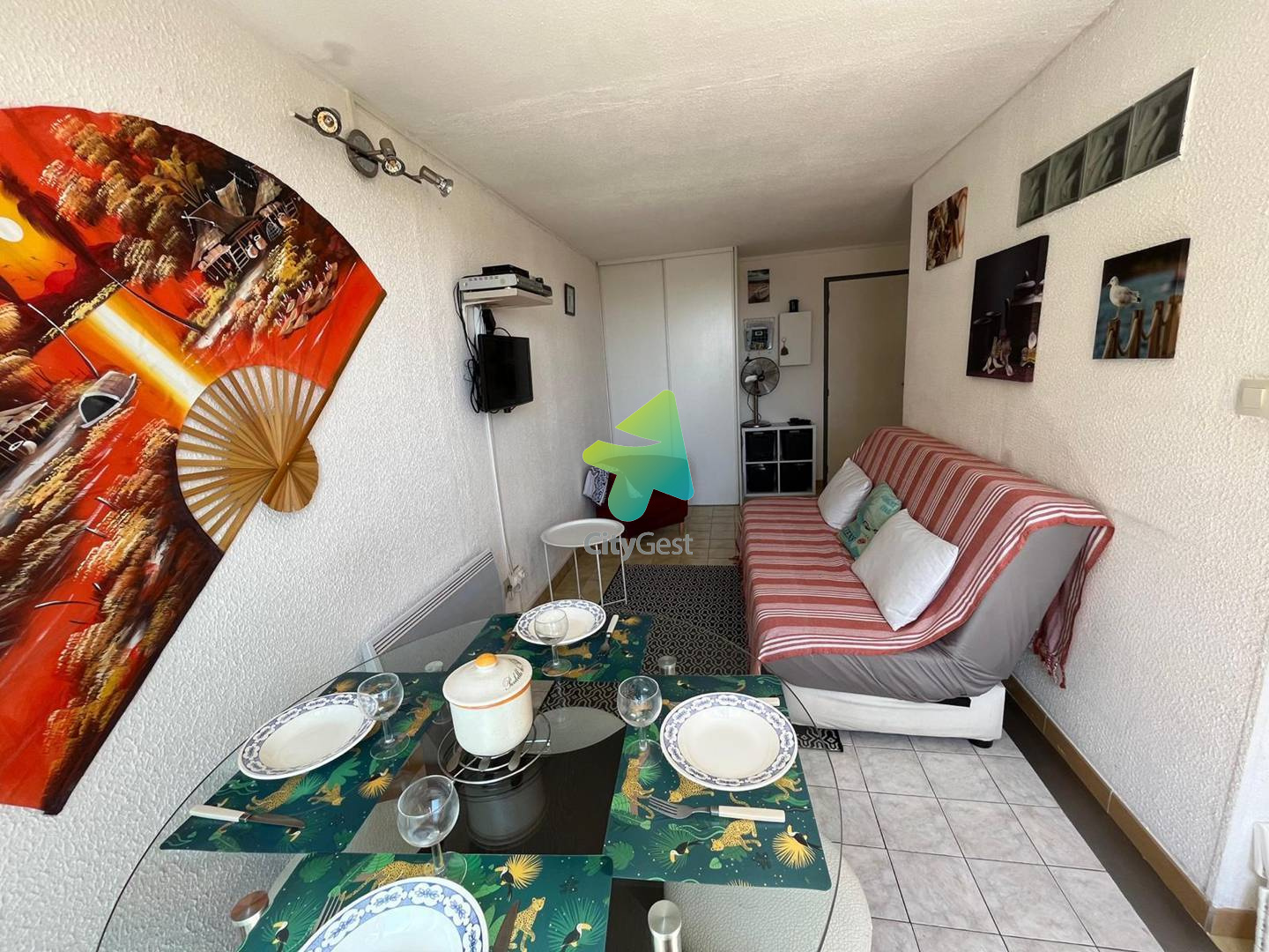 Appartement meublé équipé pour 4 personnes. Résidence Santa Marina à 900 m de la plage et des commerces. Court de tennis, piscine collective ouverte en saison et parking privé. Situé au deuxième étage du bâtiment B composé d'une entrée desservant une cuisine équipée plaque de cuisson, réfrigérateur top, four micro-onde, coin repas. Un séjour avec un canapé convertible et la télévision, une chambre avec un lit double en 140 et des rangements. Salle d'eau avec douche, lavabo et wc. La Résidence se trouvant sur les hauteurs de Saint Pierre La Mer, à 900 m des commerces et à 900 m de la mer. Elle dispose d'une piscine ouverte du 7 juin au 24 septembre. Piscine ouverte suivant les décisions gouvernementales et préfectorales. Un court de tennis est aussi à votre disposition sur réservation. Prestations supplémentaires optionnelles : le linge de maison n'est pas fourni mais il est possible de le réserver à l'avance et de le récupérer à la remise des clés (kit lit double : 12.00 euros/ kit lit simple : 9.00 euros / kit serviette : avec une grande et une petite serviette : 8.00 €). Il vous sera demandé de régulariser le dépôt de garantie de votre location, le lien "swikly" vous sera envoyé 10 jours avant votre arrivée et sera à effectuer impérativement avant votre arrivée (Pas en espèces ni en chèques, des coûts seront facturés par l'opérateur). Nous sommes agréées Chèques Vacances. La taxe de séjour est en supplément. Ne convient pas aux PMR. Les clés sont à récupérer à l'agence Citygest entre 15h et 18h en saison estivale. Les informations sur les risques auxquels ce bien est exposé sont disponibles sur le site Géorisques " www.georisques.gouv.fr "