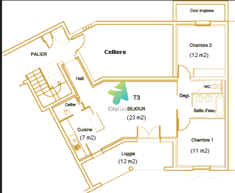 Appartement T3 avec terrasse, parking et cave