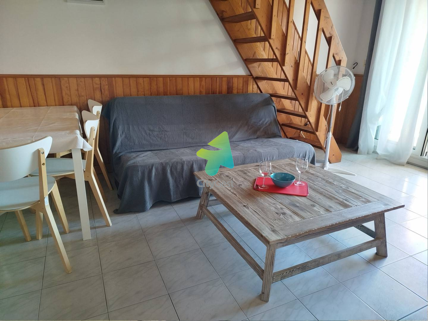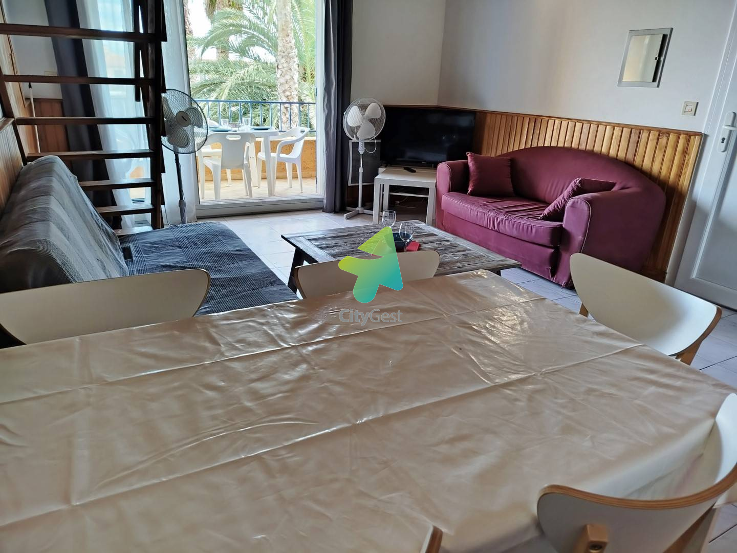 Monopropriété de 4 appartements située dans le secteur RAPATEL-PLANAS - quartier résidentiel de Saint Cyprien plage. Vous séjournerez à l'étage DROITE dans l'appartement T2 MEZZANINE qui se compose comme suit : Entrée directe dans la pièce de vie équipée d'un coin salon avec un premier canapé convertible en 140 et TV. Deuxième canapé NON convertible. Coin repas et kitchenette (Réfrigérateur/congélateur, plaque de cuisson 2 feux induction,hotte, lave vaisselle, four, micro onde, cafetière filtres, bouilloire, grill pain..) Chambre avec lit en 140 et rangements. Salle d'eau avec W.C - Douche - Lave linge A l'étage mezzanine offrant 2 couchages supplémentaires soit 2 lits en 90 - rangements. Belle terrasse couverte avec store banne et mobilier extérieur - Vue sur le jardin collectif de la propriété entièrement clôturée et fermée par un portail. Accessible aux différents locataires lors de votre séjour - idéal coin lecture & détente. Parking gratuit devant la propriété. Location pour 6 couchages maximum - Proximité plage, commerces, restaurants. Ensemble de 4 appartements situés au même endroit, parfait pour les séjours en groupe : Chacun son espace, tous réunis au même lieu ! Prestations supplémentaires optionnelles : le linge de maison n'est pas fourni mais il est possible de le réserver à l'avance et de le récupérer à la remise des clés (kit lit double: 12.00 euros/ kit lit simple: 9.00 euros / kit serviette avec une grande et une petite serviette: 8.00 €). Location WIFI BOX : 39 € / semaine Il vous sera demandé de régulariser le dépôt de garantie de votre location, le lien vous sera envoyé 10 jours avant votre arrivée. Nous sommes agréées Chèques Vacances.