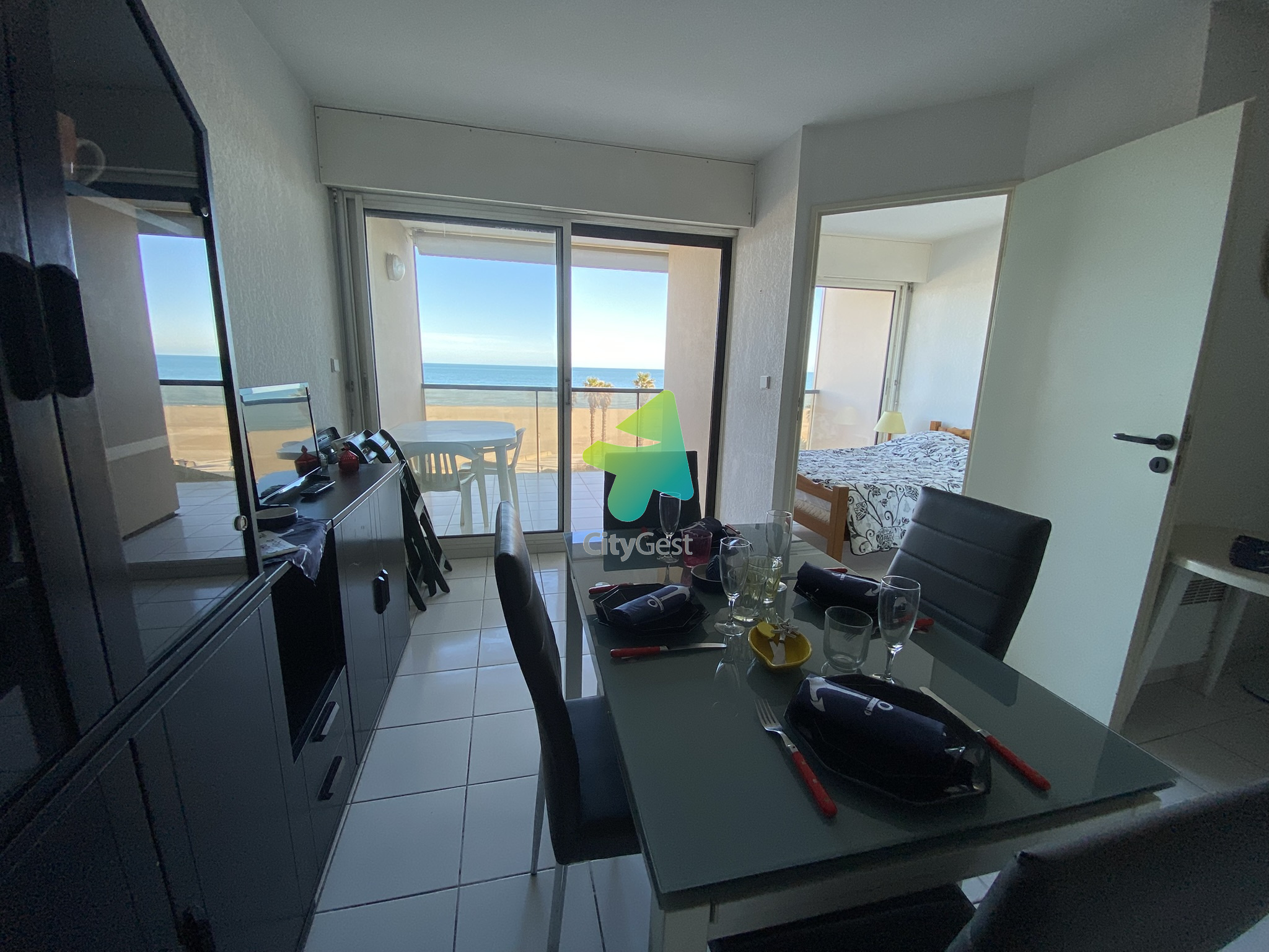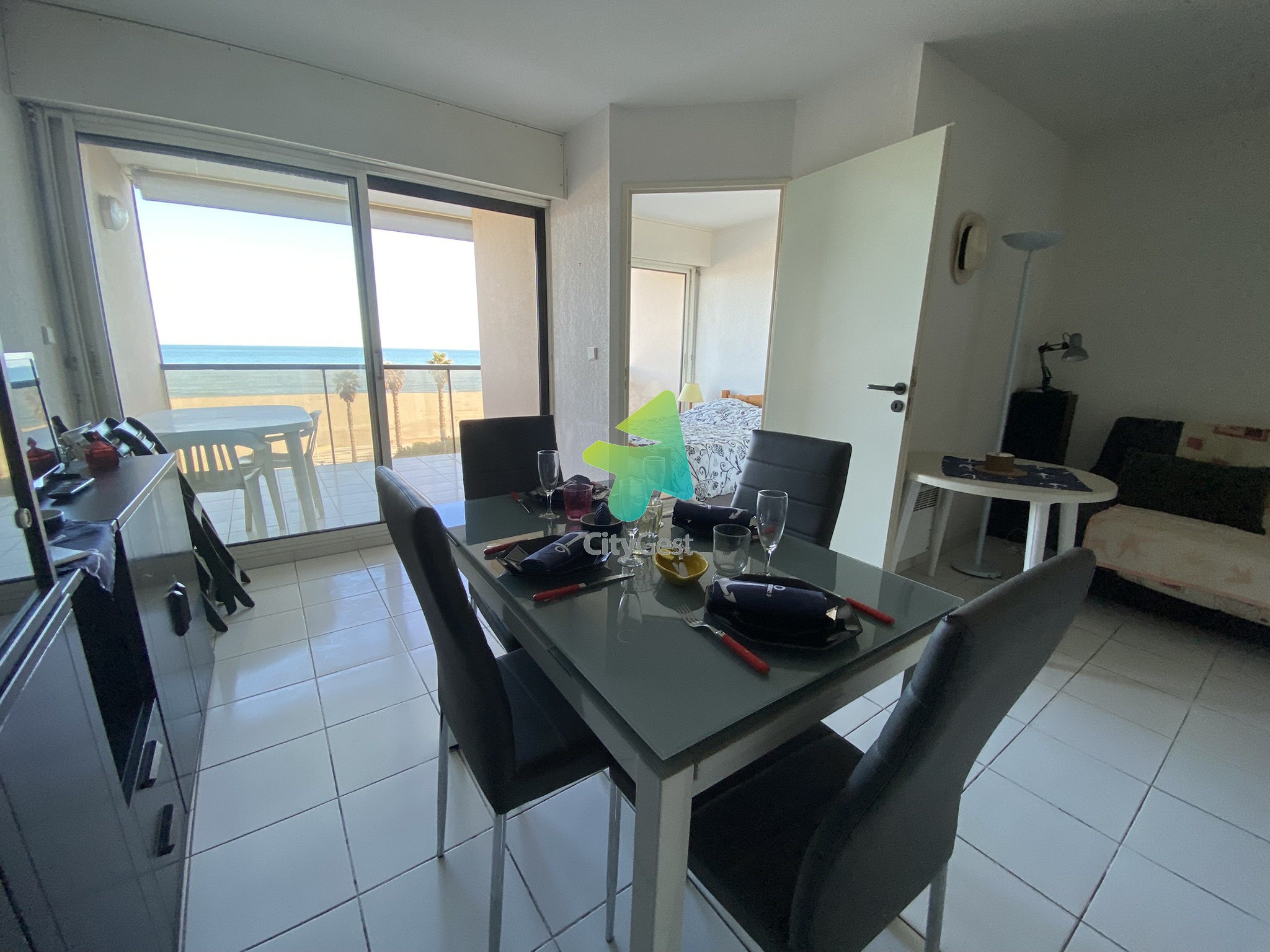 EXCLUSIVITE CITYGEST CANET. Heureux de vous présenter ce produit très recherché. Situé quartier Grand Sud dans une résidence sécurisée qui possède un accès direct à la plage et une piscine. La vue mer est splendide et la terrasse de 10m² vous permettra d'en profiter pleinement. L'appartement est lumineux avec deux larges baies vitrées dans les deux pièces principales. L'ensemble séjour cuisine fait 21m² pour une superficie habitable totale de 37m². Quelques rénovations seront à prévoir pour atteindre le bonheur total. Possibilité d'acquérir un garage en sous-sol de la résidence.