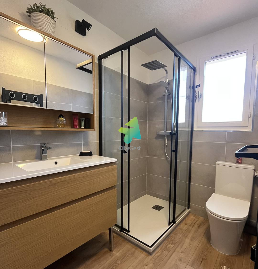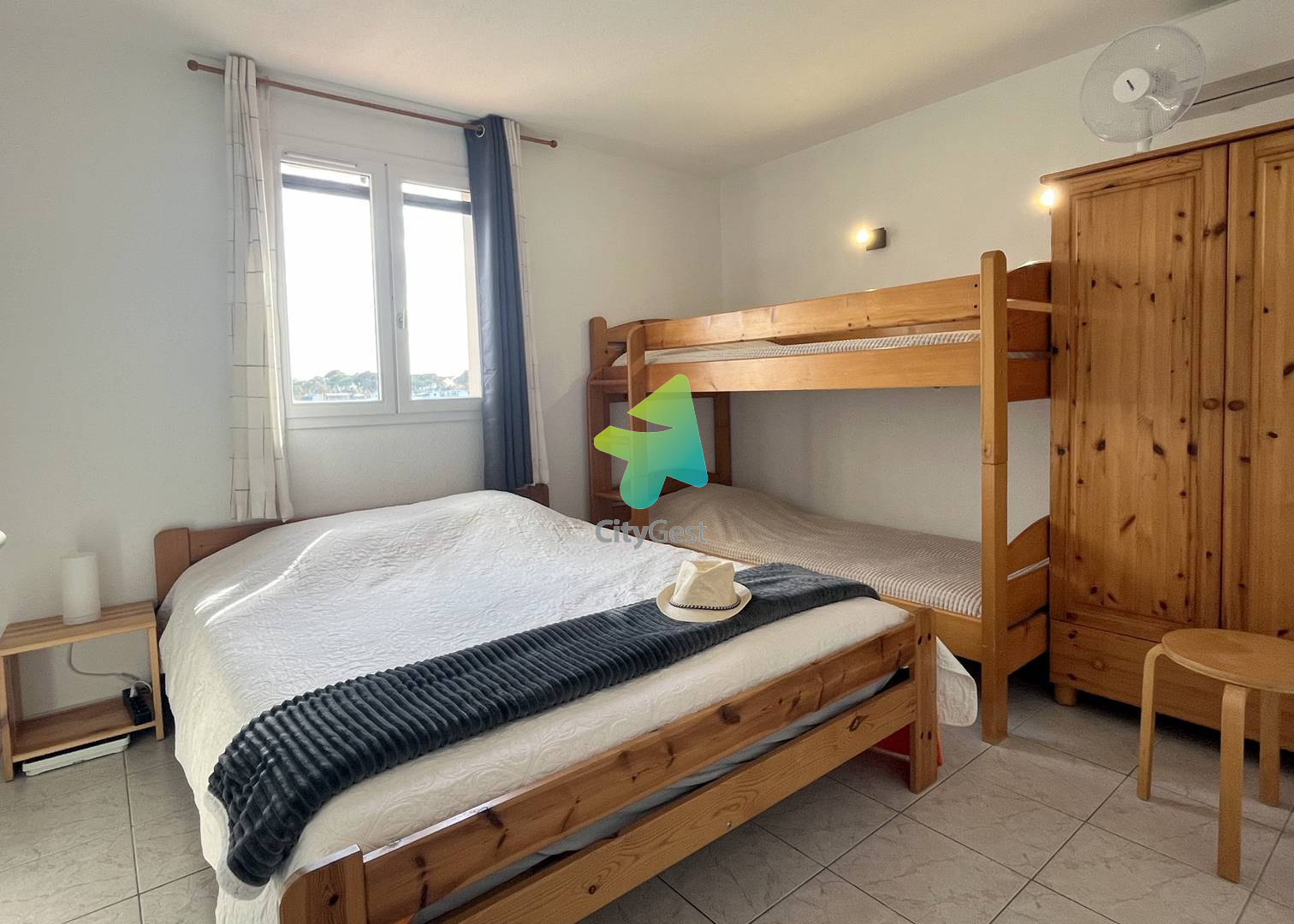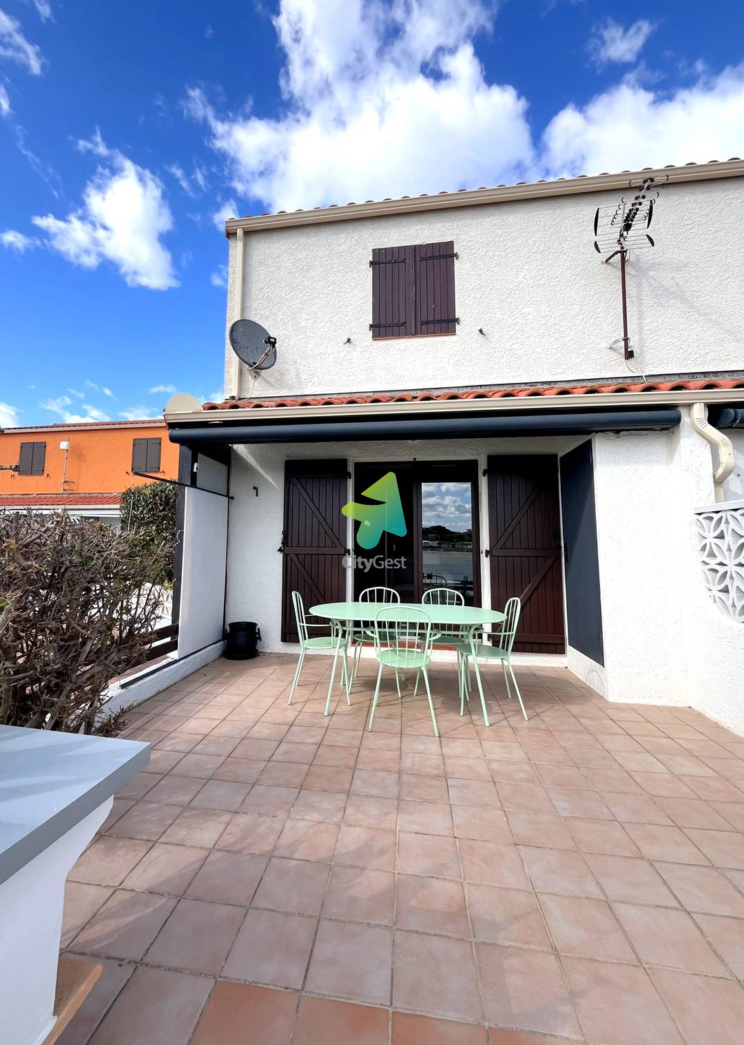 5JDR35D - Le Barcarès - Résidence Les Jardins du Rivage -Offrez-vous un séjour ressourçant dans cette agréable maison mitoyenne d’environ 52 m², idéalement située et bénéficiant d’une magnifique vue dégagée sur l’étang. Située à seulement 1 km de la plage et du centre-ville, cette charmante maisonnette climatisée sur deux niveaux est idéale pour des vacances en famille ou entre amis. Pouvant accueillir jusqu’à 5 personnes, elle se trouve dans une résidence calme et sécurisée, offrant confort et tranquillité. Au rez-de-chaussée, vous découvrirez une belle pièce de vie lumineuse et conviviale avec une cuisine ouverte sur le séjour. L’espace salon est aménagé avec un canapé confortable et une télévision, parfait pour se détendre après une journée à la plage. La cuisine, entièrement équipée, vous permettra de préparer vos repas comme à la maison : réfrigérateur avec freezer, cafetière Senseo, bouilloire, grille-pain et tout le nécessaire pour cuisiner en toute simplicité. Un toilette indépendant se trouve également à ce niveau pour plus de praticité. Un cellier complète ce rez-de-chaussée, avec machine à laver et espace de rangement, idéal pour les séjours prolongés et le confort de toute la famille À l’étage, vous trouverez : Une première chambre climatisée, équipée d’un lit double en 160 cm, dispose d’une armoire avec penderie offrant un bel espace de rangement. La seconde chambre, également climatisée, propose un lit double en 160 cm ainsi que deux lits superposés en 90 cm, idéale pour accueillir enfants ou amis en toute convivialité. Vous bénéficierez également d’une salle d’eau moderne avec douche, vasque, WC et sèche-serviettes pour plus de confort. À l’extérieur, une agréable terrasse aménagée avec mobilier de jardin et store électrique vous invite à profiter d’un cadre exceptionnel, offrant une vue dégagée et apaisante sur l’étang, parfaite pour vos repas en plein air ou vos moments de détente. Les plus : Climatisation dans les deux chambres Parking privé nominatif avec barrière Piscine collective ouverte en saison Prestations supplémentaires optionnelles : Le linge de maison n’est pas fourni, mais il est possible de le réserver à l’avance et de le récupérer lors de la remise des clés : Kit lit double : 12.00 € Kit lit simple : 9.00 € Kit serviettes (une grande et une petite) : 8.00 € Option ménage de fin de séjour à demander à l’agence Il vous sera demandé de régulariser le dépôt de garantie de votre location. Un lien vous sera envoyé 10 jours avant votre arrivée. Celui-ci devra être complété impérativement avant votre arrivée (pas d’espèces ni de chèque). Nous sommes agréés Chèques Vacances. Ne convient pas aux PMR. Les clés sont à récupérer à l’agence Citygest entre 15h et 18h. Les informations sur les risques auxquels ce bien est exposé sont disponibles sur le site Géorisques : www.georisques.gouv.fr