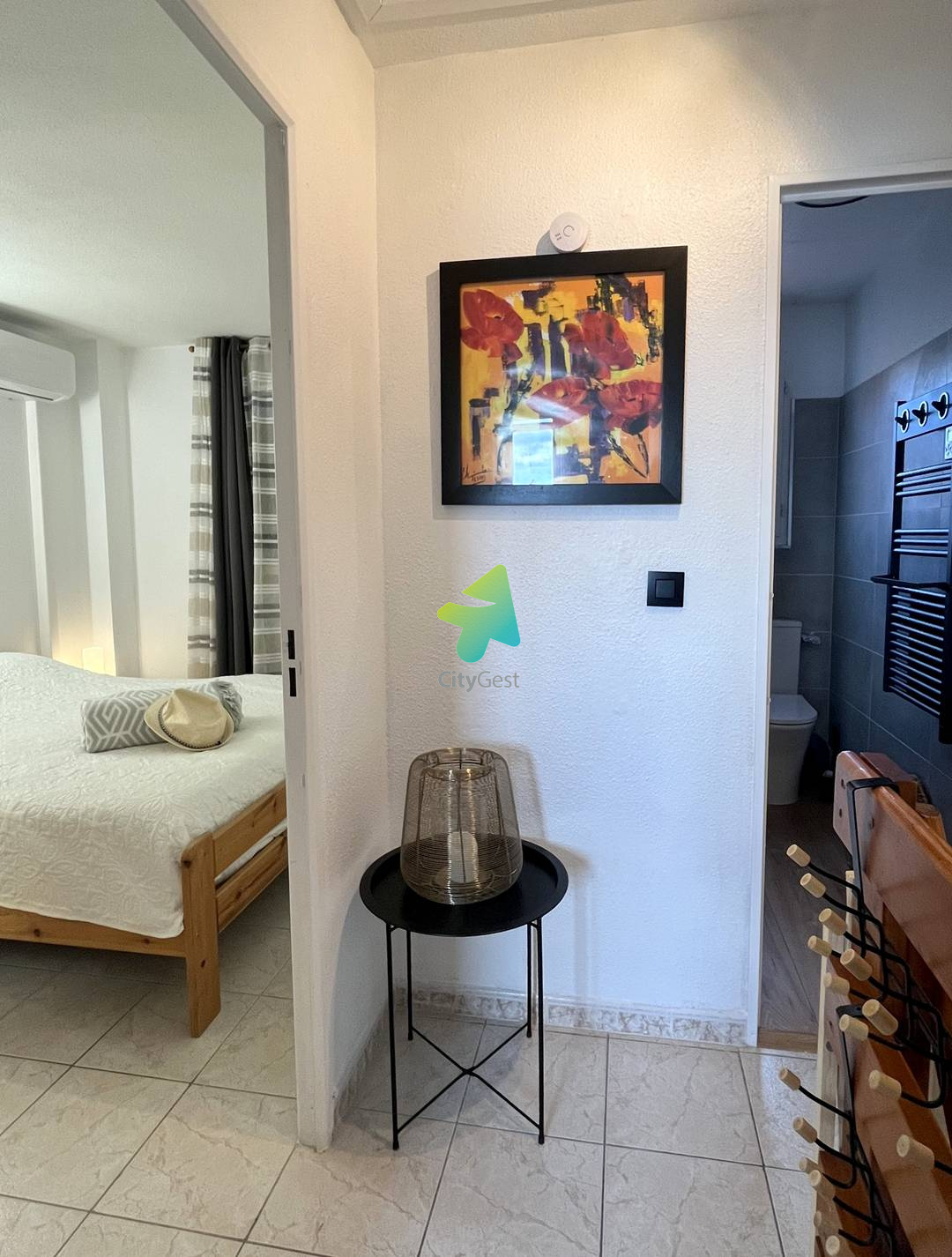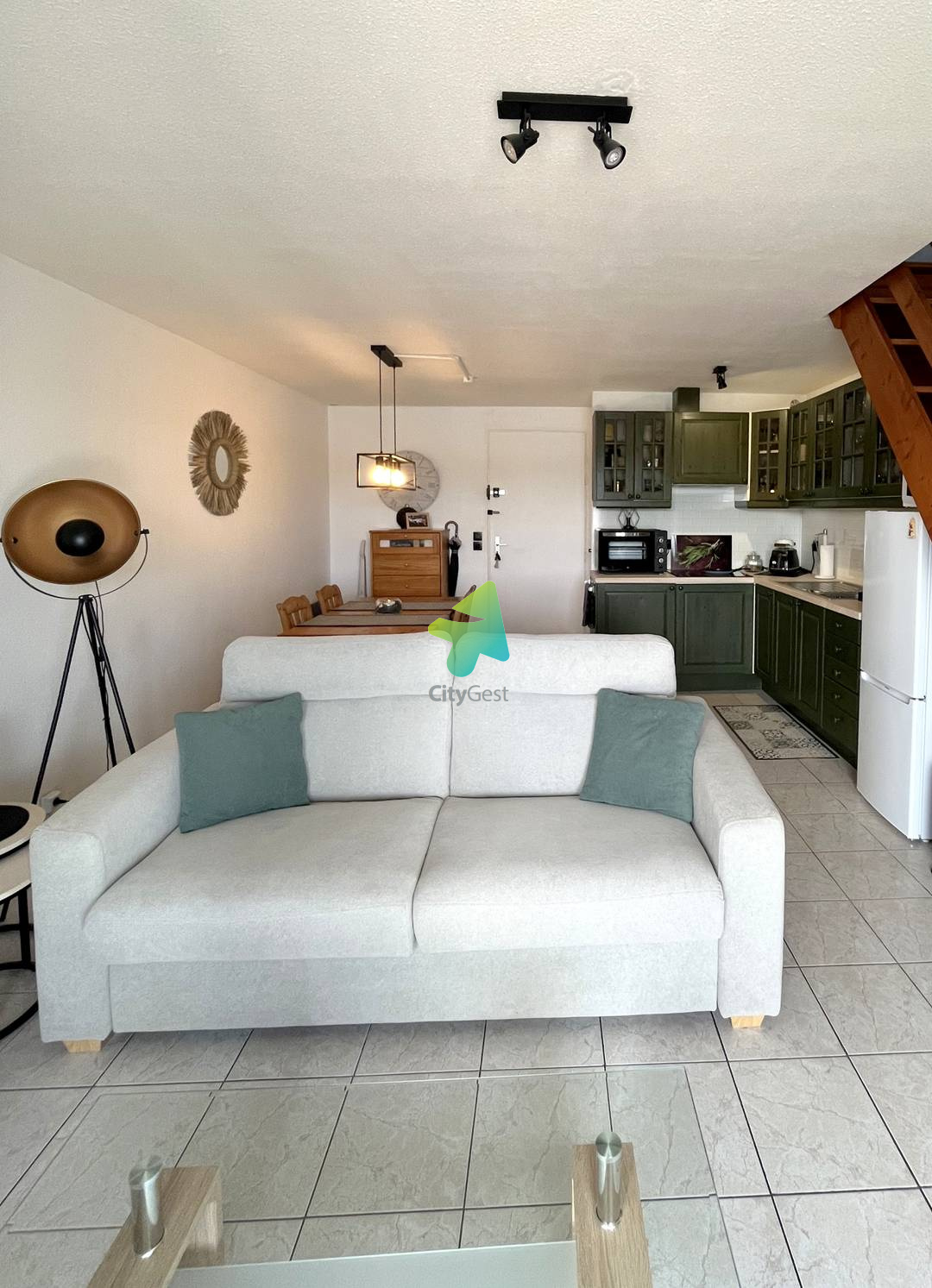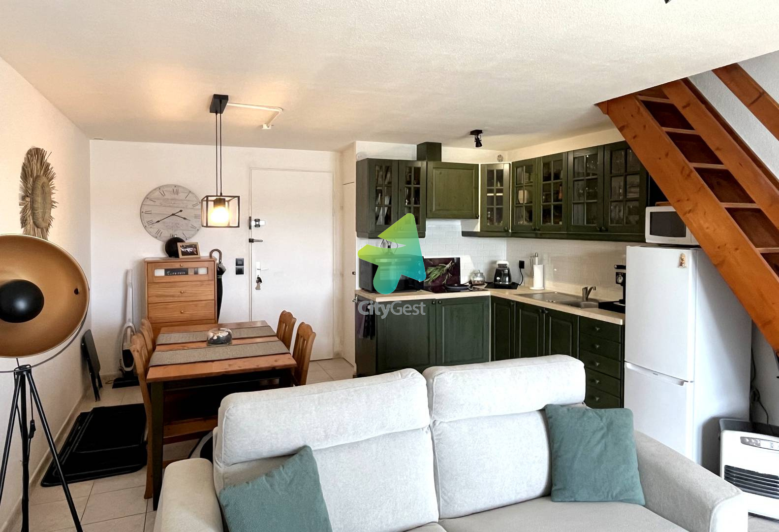 5JDR35D - Le Barcarès - Résidence Les Jardins du Rivage -Offrez-vous un séjour ressourçant dans cette agréable maison mitoyenne d’environ 52 m², idéalement située et bénéficiant d’une magnifique vue dégagée sur l’étang. Située à seulement 1 km de la plage et du centre-ville, cette charmante maisonnette climatisée sur deux niveaux est idéale pour des vacances en famille ou entre amis. Pouvant accueillir jusqu’à 5 personnes, elle se trouve dans une résidence calme et sécurisée, offrant confort et tranquillité. Au rez-de-chaussée, vous découvrirez une belle pièce de vie lumineuse et conviviale avec une cuisine ouverte sur le séjour. L’espace salon est aménagé avec un canapé confortable et une télévision, parfait pour se détendre après une journée à la plage. La cuisine, entièrement équipée, vous permettra de préparer vos repas comme à la maison : réfrigérateur avec freezer, cafetière Senseo, bouilloire, grille-pain et tout le nécessaire pour cuisiner en toute simplicité. Un toilette indépendant se trouve également à ce niveau pour plus de praticité. Un cellier complète ce rez-de-chaussée, avec machine à laver et espace de rangement, idéal pour les séjours prolongés et le confort de toute la famille À l’étage, vous trouverez : Une première chambre climatisée, équipée d’un lit double en 160 cm, dispose d’une armoire avec penderie offrant un bel espace de rangement. La seconde chambre, également climatisée, propose un lit double en 160 cm ainsi que deux lits superposés en 90 cm, idéale pour accueillir enfants ou amis en toute convivialité. Vous bénéficierez également d’une salle d’eau moderne avec douche, vasque, WC et sèche-serviettes pour plus de confort. À l’extérieur, une agréable terrasse aménagée avec mobilier de jardin et store électrique vous invite à profiter d’un cadre exceptionnel, offrant une vue dégagée et apaisante sur l’étang, parfaite pour vos repas en plein air ou vos moments de détente. Les plus : Climatisation dans les deux chambres Parking privé nominatif avec barrière Piscine collective ouverte en saison Prestations supplémentaires optionnelles : Le linge de maison n’est pas fourni, mais il est possible de le réserver à l’avance et de le récupérer lors de la remise des clés : Kit lit double : 12.00 € Kit lit simple : 9.00 € Kit serviettes (une grande et une petite) : 8.00 € Option ménage de fin de séjour à demander à l’agence Il vous sera demandé de régulariser le dépôt de garantie de votre location. Un lien vous sera envoyé 10 jours avant votre arrivée. Celui-ci devra être complété impérativement avant votre arrivée (pas d’espèces ni de chèque). Nous sommes agréés Chèques Vacances. Ne convient pas aux PMR. Les clés sont à récupérer à l’agence Citygest entre 15h et 18h. Les informations sur les risques auxquels ce bien est exposé sont disponibles sur le site Géorisques : www.georisques.gouv.fr