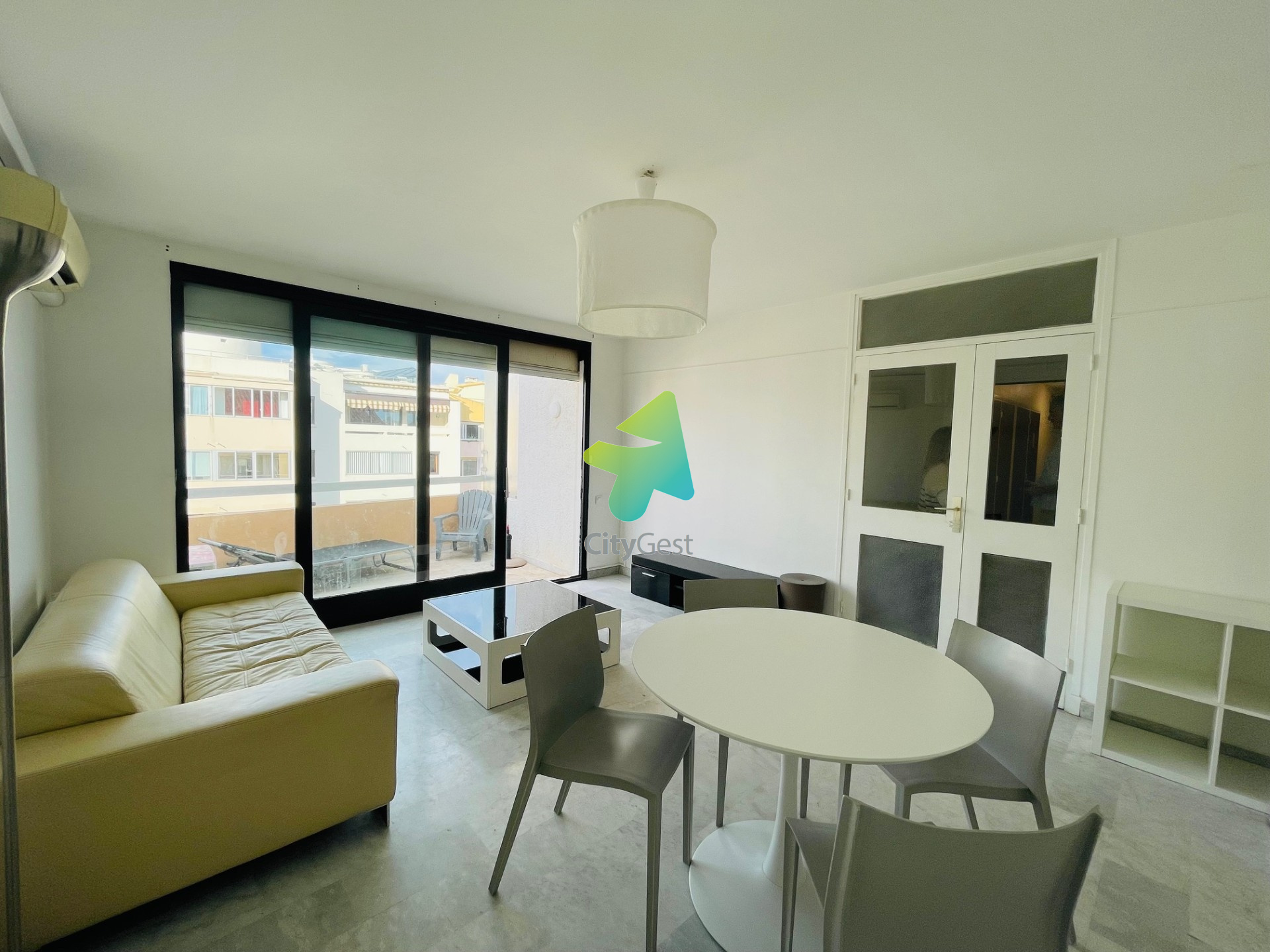 Rue Benjamin Franklin - Très bel appartement T2 de 65m2 avec une terrasse et un balcon au 8ième et dernier étage avec ascenseur. Il se compose d'une entrée avec placards, un salon/séjour lumineux, une jolie cuisine séparée aménagée et équipée, une chambre avec placards et salle de bains attenante, WC séparés. Climatisation . Double vitrage - Une cave . Loyer : 570 euros / Charges: 50 euros / Dépôt de garantie: 570 euros / Frais d'agence : 570 euros ( Visite, constitution du dossier, rédaction du bail : 376 euros / Etat des lieux : 194 euros ). Plus de renseignements au 06 38 85 48 87 ou par mail à locationperpignan@citygest.immo